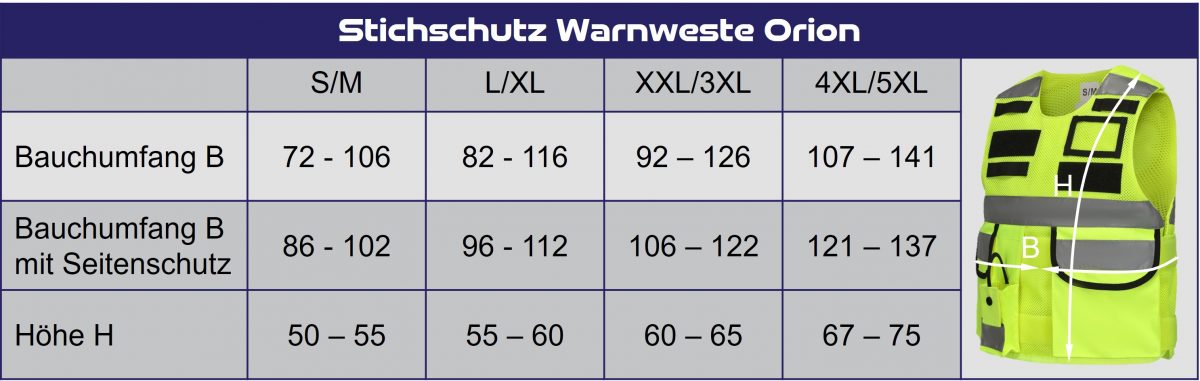 Die Stichschutz-Warnweste Orion Classic vereint zuverlässigen Schutz, maximale Sichtbarkeit und hohen Komfort in einem Produkt. Ausgestattet mit flexiblen Stichschutzeinlagen aus hochfestem Aramid-Gewebe, das untrennbar mit einem Spezialkunststoff verbunden ist, bietet die Weste ein ausgezeichnetes Verhältnis von Sicherheit, Gewicht und Flexibilität und eignet sich daher optimal für lange Einsätze.