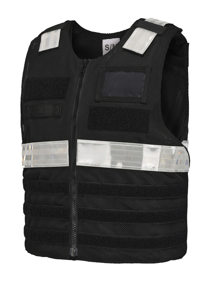 Reflective strips around the vest and reflective shoulder markings enhance visibility both day and night. Large hook-and-loop (Velcro) panels and modular attachment options provide space for ID cards, patches, or additional equipment.